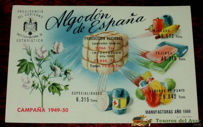 POSTAL DEL INSTITUTO NACIONAL DE ESTADÍSTICA, ALGODON DE ESPAÑA, CAMPAÑA 1949/50, E. I.G. VALVERDE, NO CIRCULADA.