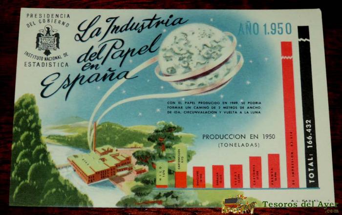 POSTAL DEL INSTITUTO NACIONAL DE ESTADÍSTICA, LA INDUSTRIA DEL PAPEL EN ESPAÑA, CAMPAÑA 1950, E. I.G. VALVERDE, NO CIRCULADA.
