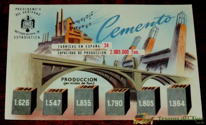 POSTAL DEL INSTITUTO NACIONAL DE ESTADÍSTICA, CEMENTO, E. I.G. VALVERDE, NO CIRCULADA.