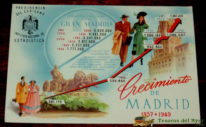 POSTAL DEL INSTITUTO NACIONAL DE ESTADÍSTICA, CRECIMIENTO DE MADRID, CENSO DE 1949, E. I.G. VALVERDE, NO CIRCULADA.