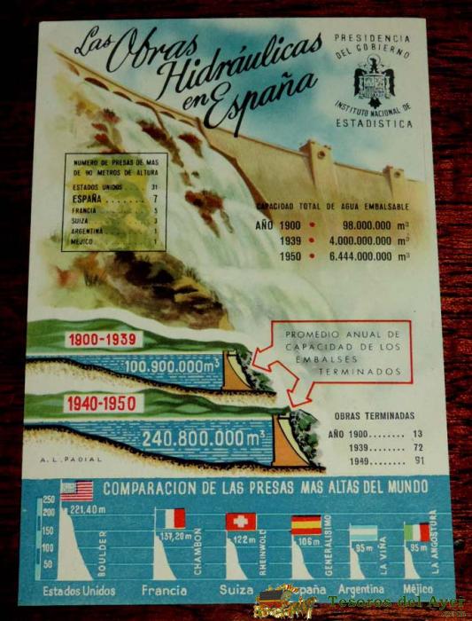 POSTAL DEL INSTITUTO NACIONAL DE ESTADÍSTICA, LAS OBRAS HIDRAULICAS EN ESPAÑA, E. I.G. VALVERDE, NO CIRCULADA.