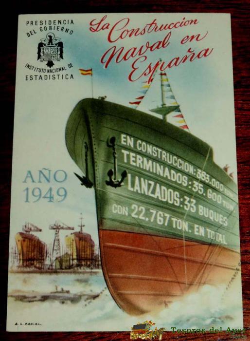 POSTAL DEL INSTITUTO NACIONAL DE ESTADÍSTICA, LA CONTRUCCION NAVAL EN ESPAÑA, AÑO 1949, E. I.G. VALVERDE, NO CIRCULADA.
