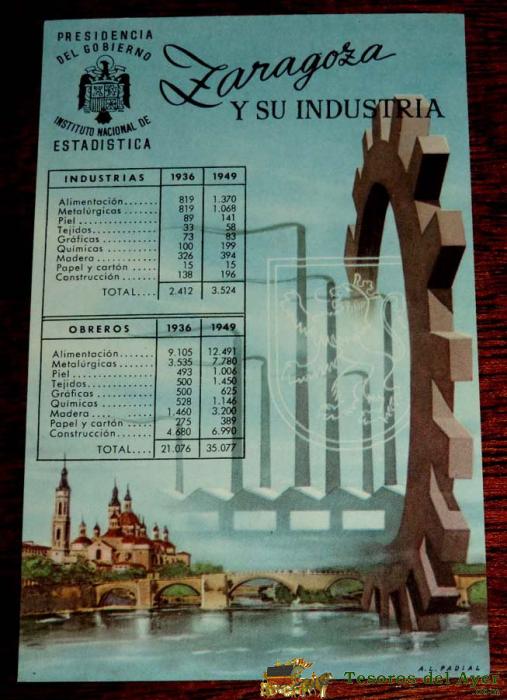 POSTAL DEL INSTITUTO NACIONAL DE ESTADÍSTICA, LA ZARAGOZA Y SU INDUSTRIA, AÑO 1949, E. I.G. VALVERDE, NO CIRCULADA.