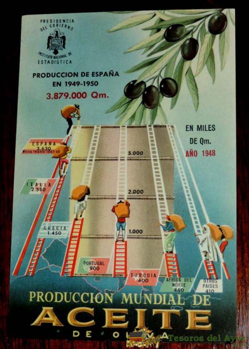 POSTAL DEL INSTITUTO NACIONAL DE ESTADÍSTICA, PRODUCCION MUNDIAL DE ACEITE DE OLIVA, AÑO 1948, E. I.G. VALVERDE, NO CIRCULADA.