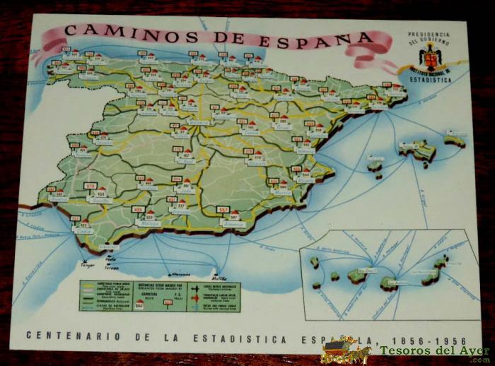 POSTAL DEL INSTITUTO NACIONAL DE ESTADÍSTICA, CAMINOS DE ESPAÑA, AÑO 1956, E. I.G. VALVERDE, NO CIRCULADA.
