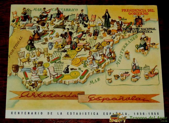 POSTAL DEL INSTITUTO NACIONAL DE ESTADÍSTICA, PRESIDENCIA DEL GOBIERNO, ARTESANIA ESPAÑOLA, AÑO 1956, E. I.G. VALVERDE, NO CIRCULADA.