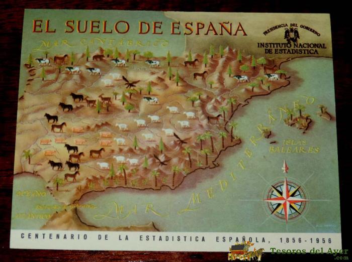 POSTAL DEL INSTITUTO NACIONAL DE ESTADÍSTICA, EL SUELO DE ESPAÑA, AÑO 1956, E. I.G. VALVERDE, NO CIRCULADA.