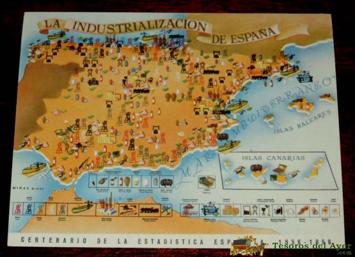 POSTAL DEL INSTITUTO NACIONAL DE ESTADÍSTICA, LA INDUSTRIALIZACION DE ESPAÑA, AÑO 1956, E. I.G. VALVERDE, NO CIRCULADA.