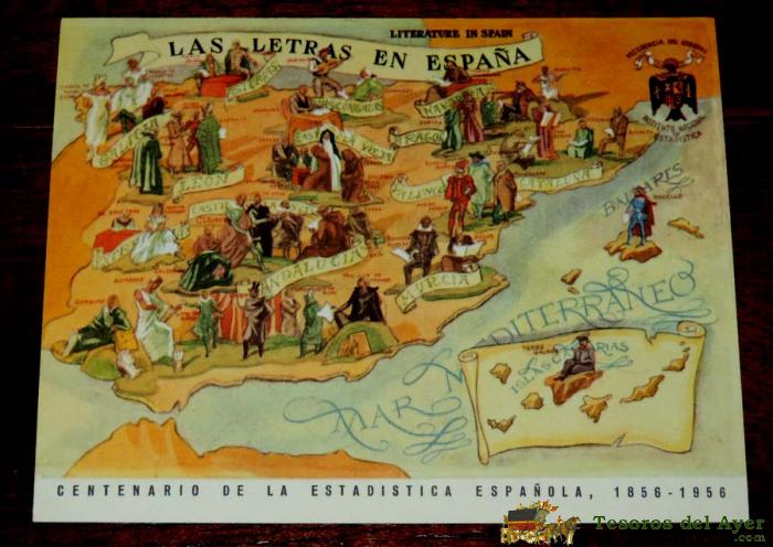 POSTAL DEL INSTITUTO NACIONAL DE ESTADÍSTICA, LAS LETRAS EN ESPAÑA, AÑO 1956, E. I.G. VALVERDE, NO CIRCULADA.
