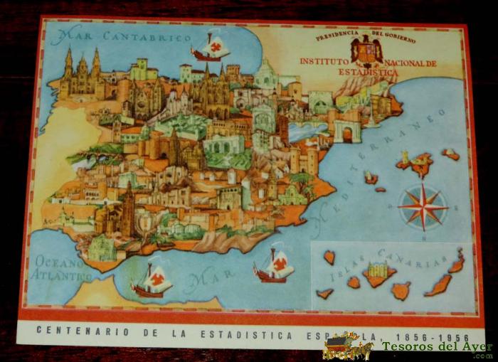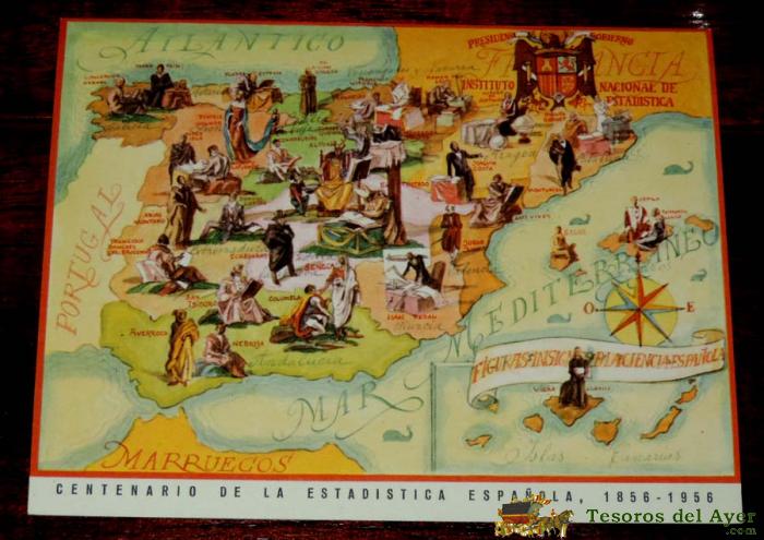 POSTAL DEL INSTITUTO NACIONAL DE ESTADÍSTICA, CENTENARIO DE LA ESTADISTICA ESPAÑOLA, AÑO 1956, E. I.G. VALVERDE, NO CIRCULADA.