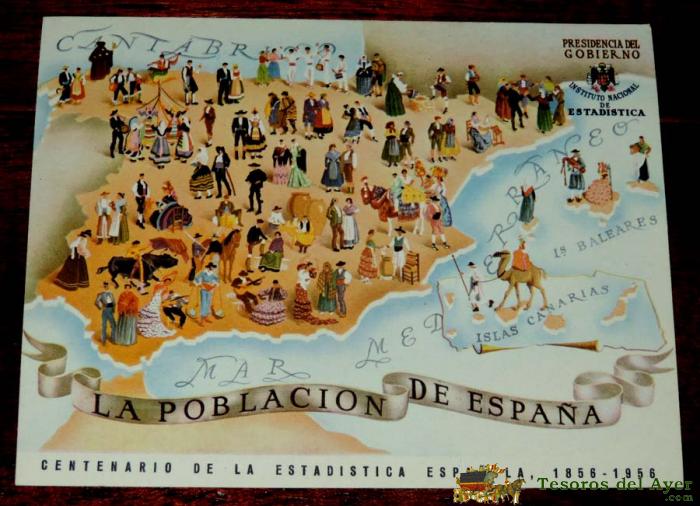 POSTAL DEL INSTITUTO NACIONAL DE ESTADÍSTICA, LA POBLACION DE ESPAÑA, TRAJES TIPICOS, AÑO 1956, E. I.G. VALVERDE, NO CIRCULADA.