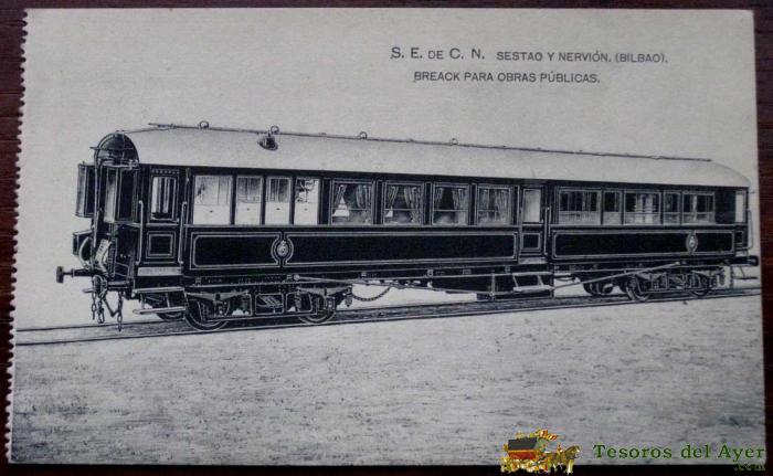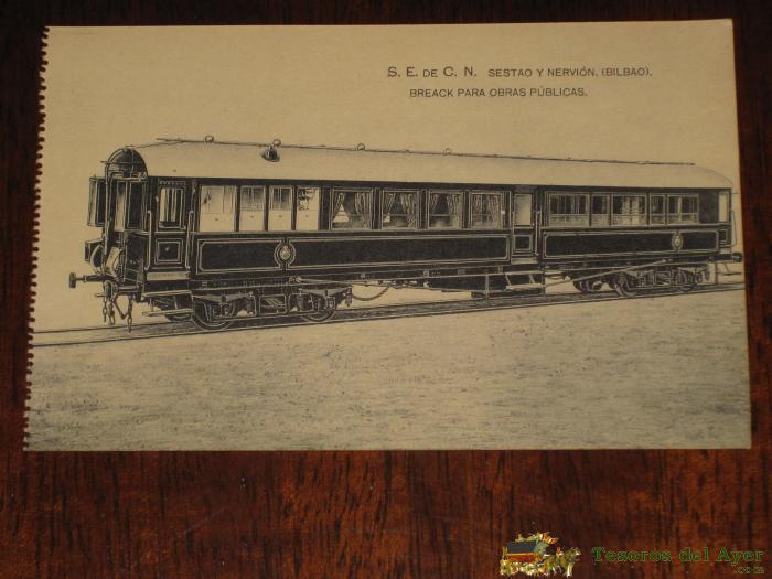 ANTIGUA POSTAL DE LA SOCIEDAD ESPAÑOLA DE CRUCEROS NAVALES - SESTAO - BILBAO - VAGON BREACK PARA OBRAS PUBLICAS - ED. HAUSER Y MENET - NO CIRCULADA.