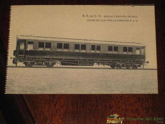 ANTIGUA POSTAL DE LA SOCIEDAD ESPAÑOLA DE CRUCEROS NAVALES - SESTAO - BILBAO - COCHE DE LUJO PARA LA COMPAÑIA M.Z.A. - ED. HAUSER Y MENET - NO CIRCULADA.