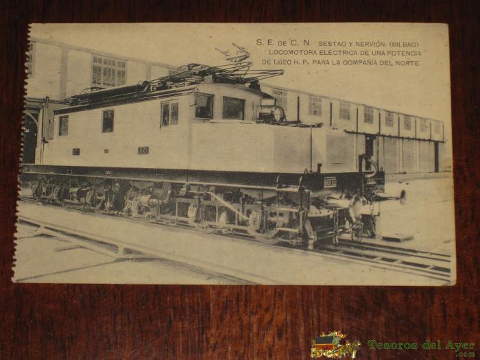 ANTIGUA POSTAL DE LA SOCIEDAD ESPAÑOLA DE CRUCEROS NAVALES - SESTAO - BILBAO - LOCOMOTORA ELECTRICA DE UNA POTENCIA, PARA LA COMPAÑIA DEL NORTE - ED. HAUSER Y MENET - NO CIRCULADA.