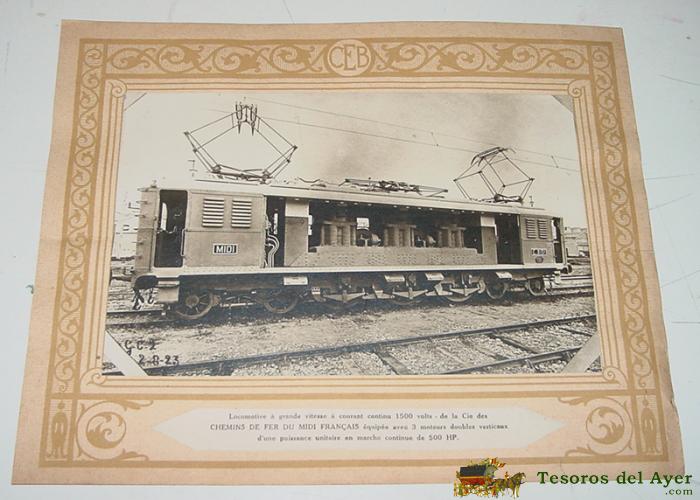 ANTIGUA FOTOGRAFIA DE LOCOMOTORA A CORRIENTE CONTINUA 1500 VOLTS. - DE LA COMPAÑIA CHEMIS DE FER DU MIDI FRANCAIS - EQUIPADO CON 3 MOTORES VERTICALES - MIDE INCLUIDO EL PASSE PARTOUT 27 X 22 CMS.