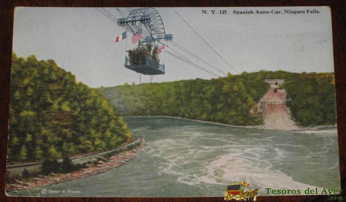 ANTIGUA POSTAL DE PUENTE COLGANTE, FUNICULAR - DE FABRICACION ESPAÑOLA EN LAS NIAGARA FALLS - NO CIRCULADA.
