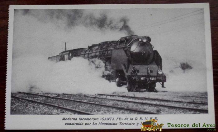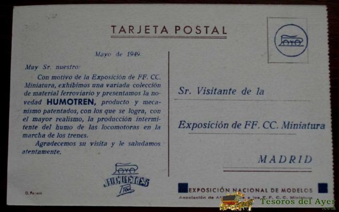 ANTIGUA POSTAL CON PUBLICIDAD DE JUGUETES PAYA RAI (IBI) ALICANTE 1949 - TREN PAYA LOCOMOTORA - CON MOTIVO DE LA EXPOSICION NACIONAL DE MODELOS, FERROCARRILES EN MINIATURA - LOCOMOTORA SANTA FE DE LA RENFE CONSTRUIDA POR LA MAQUINISTA TERRESTRE Y MARITIMA
