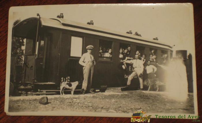 ANTIGUA FOTOGRAFIA UN POCO MAS PEQUEÑA QUE UNA POSTAL - TREN - EXCURSIONISTAS - 12 X 7,7 CMS.