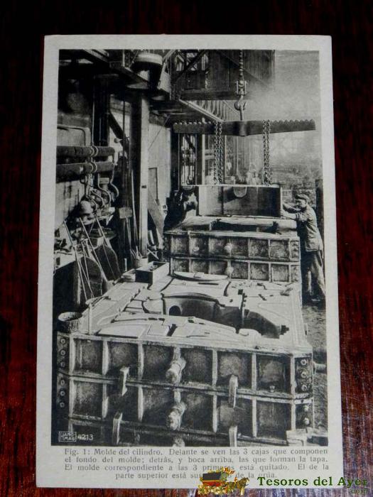 ANTIGUA POSTAL DE ENSEÑANZA, SERIE 2 (N. 1430-1439), FABRICACION DE UNA PIEZA DE LA LOCOMOTORA, EDITADAS POR LA HANOMAG, FERROCARRIL, TALLER, REPRESENTANTE EN ESPAÑA NESTOR JEUTE, MADRID, NO CIRCULADA, N. 1434.