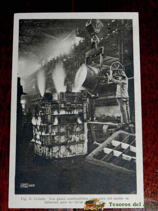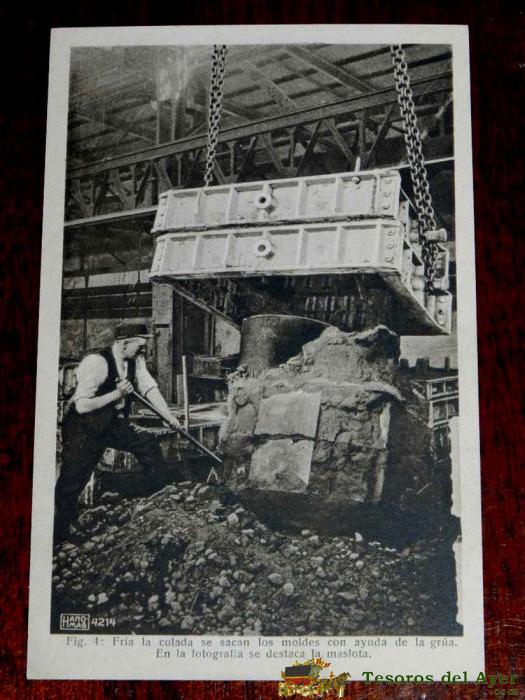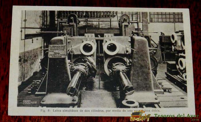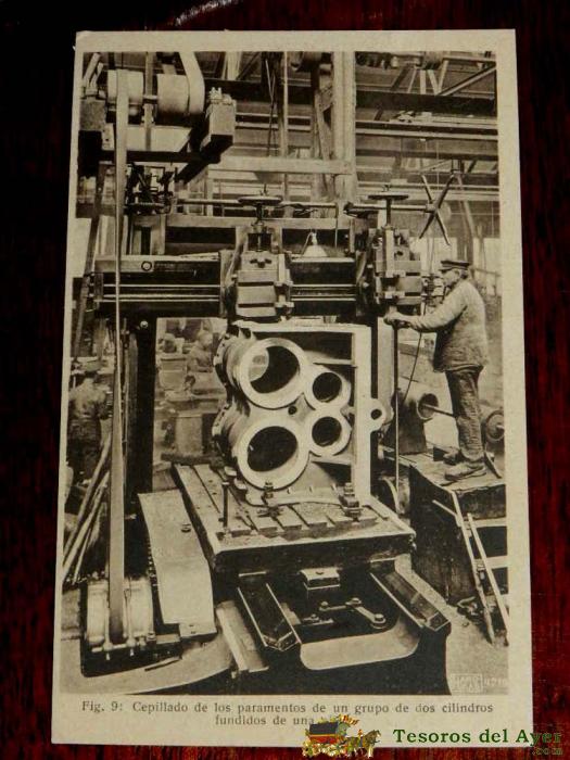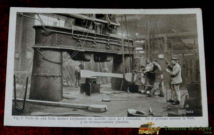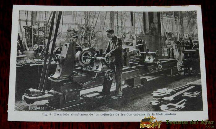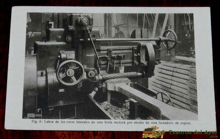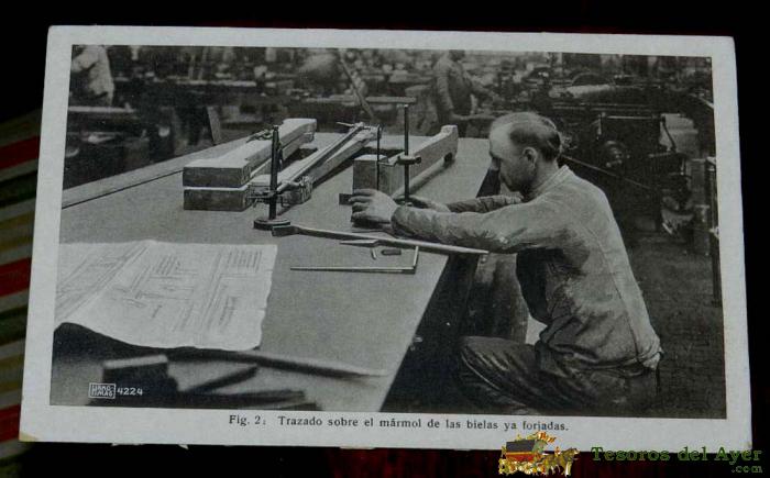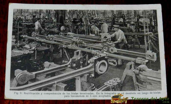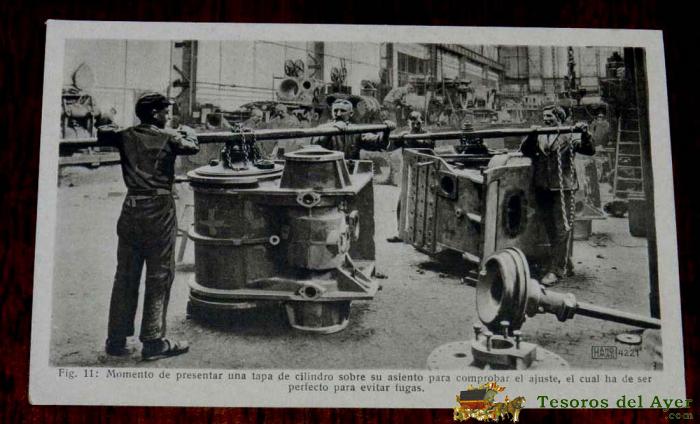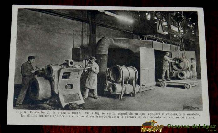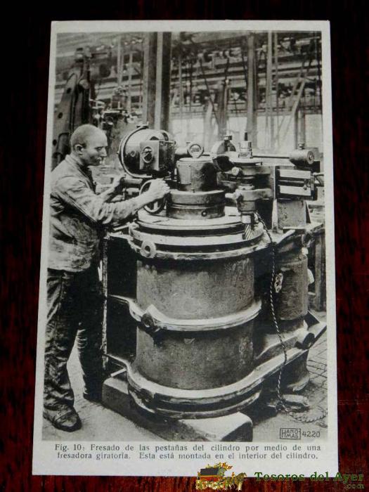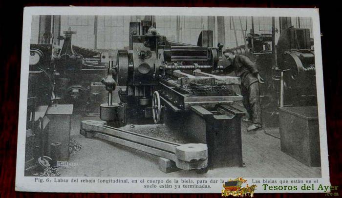 ANTIGUA POSTAL DE ENSEÑANZA, SERIE 2 (N. 1430-1439), FABRICACION DE UNA PIEZA DE LA LOCOMOTORA, EDITADAS POR LA HANOMAG, FERROCARRIL, TALLER, REPRESENTANTE EN ESPAÑA NESTOR JEUTE, MADRID, NO CIRCULADA, N. 1438.