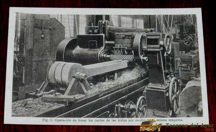 ANTIGUA POSTAL DE ENSEÑANZA, SERIE 2 (N. 1430-1439), FABRICACION DE UNA PIEZA DE LA LOCOMOTORA, EDITADAS POR LA HANOMAG, FERROCARRIL, TALLER, REPRESENTANTE EN ESPAÑA NESTOR JEUTE, MADRID, NO CIRCULADA, N. 1435.