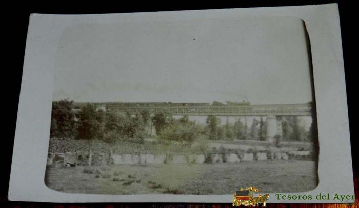 ANTIGUA FOTO POSTAL DE TREN ATRAVESANDO UN PUENTE METALICO, FERROCARRIL, SIN CIRCULAR