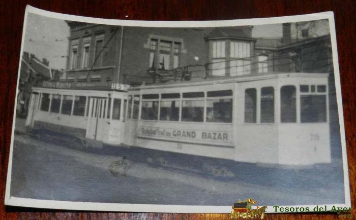 ANTIGUA FOTO POSTAL DE TRANVIA, LIEGE TRAMWAYS UNIFIES, MOTRICE A PORTES AUTOMARTIQUE 1920-13 T-150 HP, FREIN PIEPER, REMORQUE A UN SEUL SENS DE MARCHE 6T5-1946 - ESCRITA