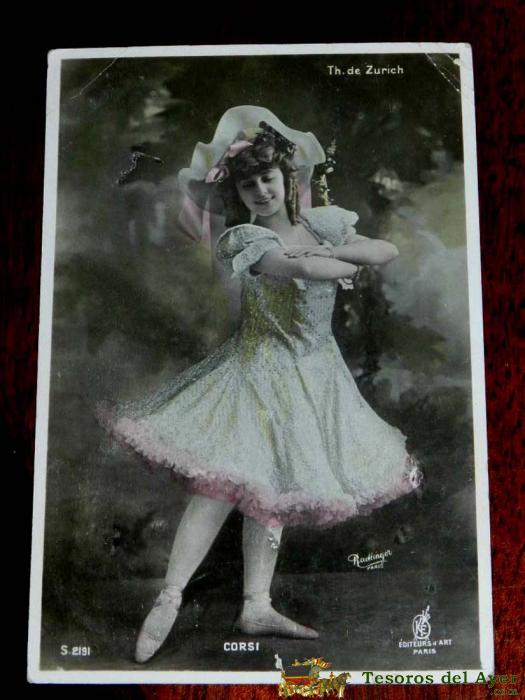 ANTIGUA FOTO POSTAL DE LA ARTISTA CORSI, TH. DE ZURICH., NO CIRCULADA, ESCRITA., ED. DART.