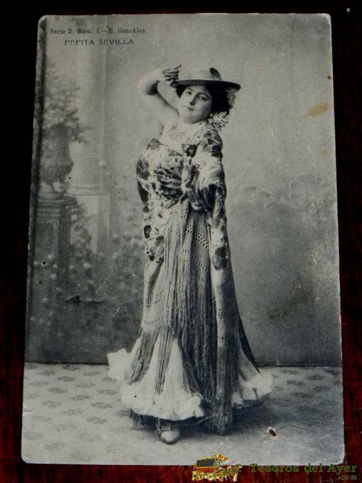 ANTIGUA POSTAL DE LA ARTISTA PEPITA SEVILLA, SERIE D. NUM. 1, E. GONZALEZ, NO CIRCULADA, ESCRITA., ED. HAUSER Y MENET.