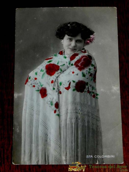 ANTIGUA FOTO POSTAL DE LA ARTISTA SANTA COLOMBINI, NO CIRCULADA, ESCRITA., ED. G.F.