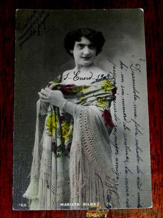 FOTO POSTAL DE ANTOÑITA PELLICER, ESCRITA EN 1908, CANTANTE, TEATRO, ESCRITA. PHG