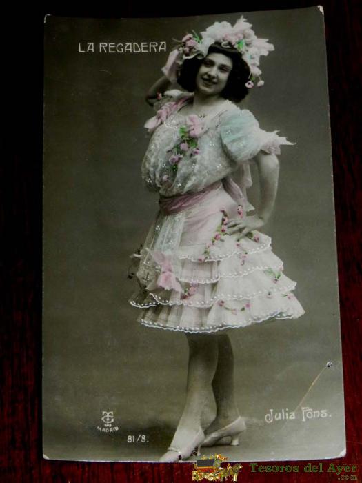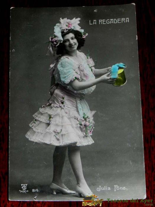 ANTIGUA FOTO POSTAL DE LA ARTISTA JULIA FONS, LA REGADERA, NO CIRCULADA, ESCRITA, ED. T.C. MADRID.