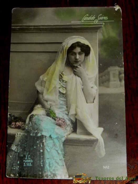 ANTIGUA FOTO POSTAL DE LA ARTISTA CANDIDA SUAREZ, NO CIRCULADA, ESCRITA, ED. T.C. MADRID.