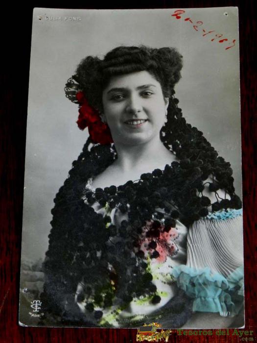 ANTIGUA FOTO POSTAL DE LA ARTISTA JULIA FONS, NO CIRCULADA, ESCRITA, ED. T.C. MADRID.