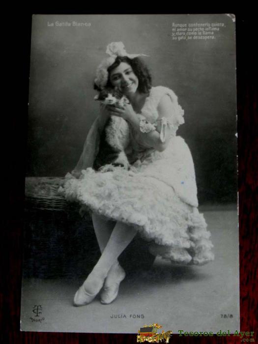 ANTIGUA FOTO POSTAL DE LA ARTISTA JULIA FONS, LA GATITA PRESUMIDA, NO CIRCULADA, ESCRITA, ED. T.C. MADRID.
