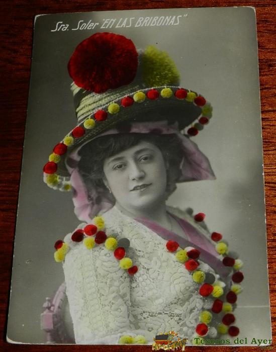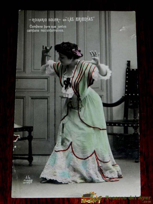 ANTIGUA FOTO POSTAL DE LA ARTISTA ROSARIO SOLER EN LAS BRIBONAS, NO CIRCULADA, ESCRITA, ED. J.C. MADRID.