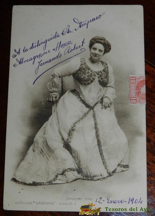 ANTIGUA POSTAL DE LA ARTISTA JOAQUINA PINO, N. 9, COLECCION CANOVAS, SERIE O, CIRCULADA, SIN DIVIDIR, ED. HAUSER Y MENET.