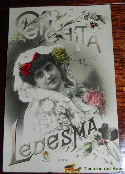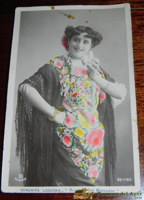FOTO POSTAL DE CONCHITA LEDESMA, CANTANTE, ACTRIZ, TEATRO, REINA DE LOS MERCADOS, 60/1183, ESCRITA EN 1907