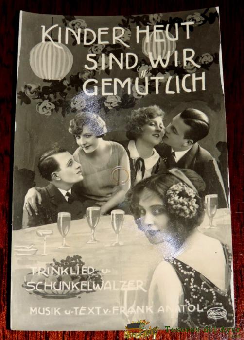 POSTCARD MUSICAL WECO TONBILD - POSTKARTE - CARTE POSTALE DISQUE - MUSIQUE - PHONOGRAPHE - KINDER HEUT SIND WIR GEMUTLICH - TRINKLIED SCHUNKELWALZER - MUSIK TEXT FRANK ANATOL - NO CIRCULADA.
