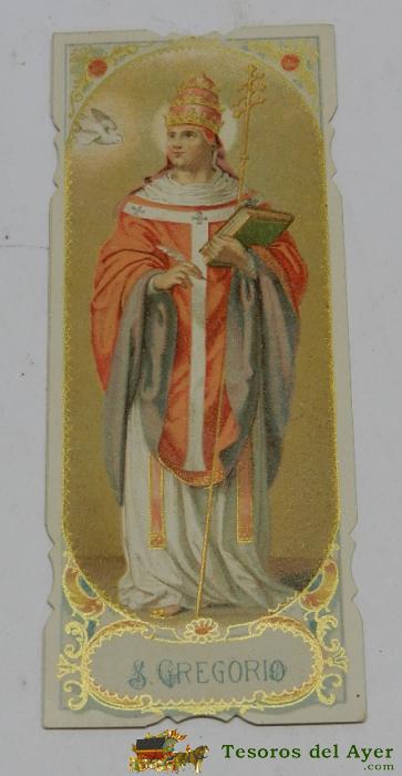 ESTAMPA RELIGIOSA ANTIGUA DE SAN GREGORIO, MIDE 12,2 X 5 CMS.