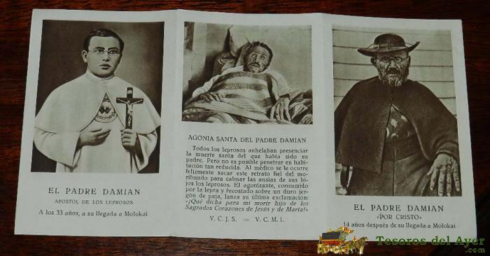 ANTIGUO RECORDATORIO, ESTAMPITA POR LA CANONIZACIÓN DEL PADRE DAMIÁN DE MOLOKAI. APOSTOL DE LOS LEPROSOS.
