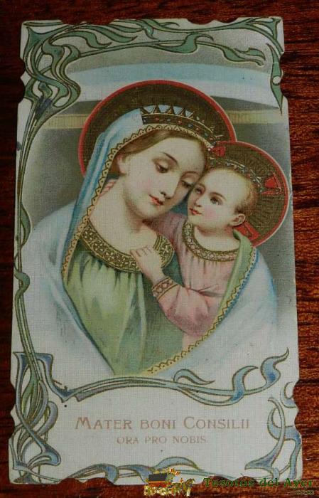 ESTAMPA RELIGIOSA MATER BONI CONSILII, CON DETALLES MODERNISTAS, MIDE 11,8 X 6,5 CMS.