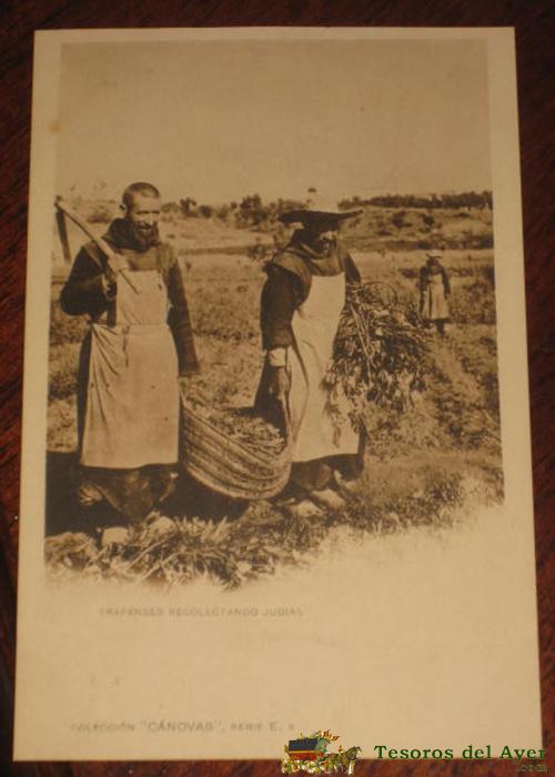 ANTIGUA POSTAL DE TRAPENSES RECOLECTANDO JUDIAS - COLECCION CANOVAS SERIE E. 5 - LUGAR NO LOCALIZADO - NO CIRCULADA.
