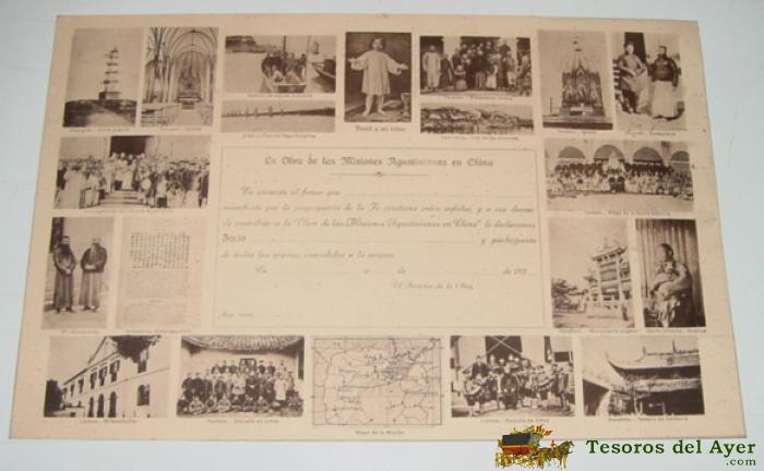 ANTIGUO CARTELITO CERTIFICADO DE LA OBRA DE LAS MISIONES AGUSTINIANAS EN CHINA . MIDE 28,8 X 18,8 CMS.