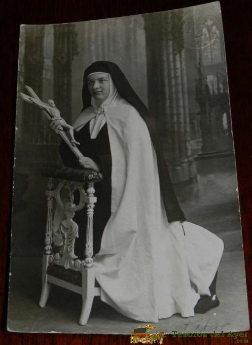 ANTIGUA FOTO POSTAL DE RELIGIOSA O MONJA, NO CIRCULADA, FOTO J. DERREY, VALENCIA.