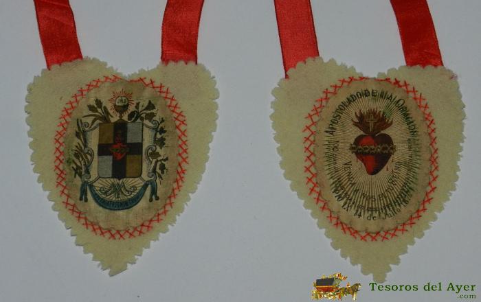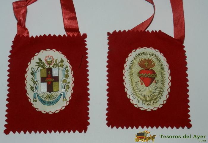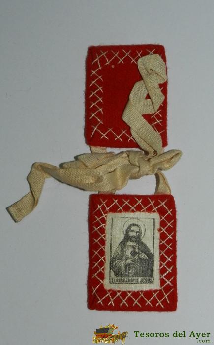 ANTIGUO ESCAPULARIO, EL CORAZON DE JESUS, MIDE 5 X 4 CMS. EN TELA.