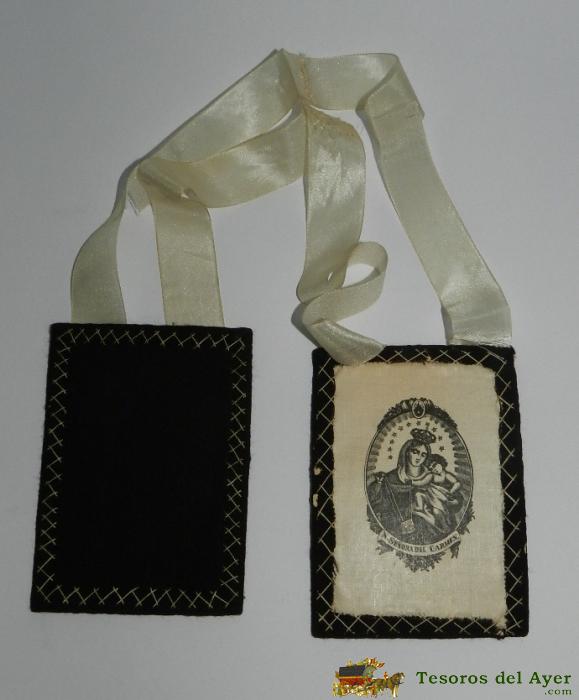 ANTIGUO ESCAPULARIO, DE NUESTRA SEPÑORA DEL CARMEN, MIDE CADA CUADRADO 11,5 X 8 CMS. EN TELA.