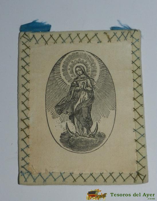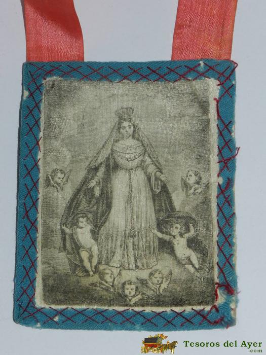 ANTIGUO ESCAPULARIO, VIRGEN MARIA, MIDE 10 X 8 CMS. EN TELA.