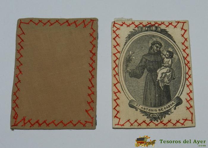 ANTIGUO ESCAPULARIO, SAN ANTONIO DE PADUA, MIDE 8 X 5,5 CMS. EN TELA.