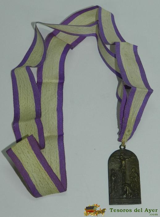 ANTIGUO ESCAPULARIO, MEDALLA SAGRADOS CALVARIOS - OBRA DE LAS TRES MARIAS DE LOS DISCIPULOS DE SAN JUAN, MIDE APROXIMADAMENTE 6 X 3 CTMOS.